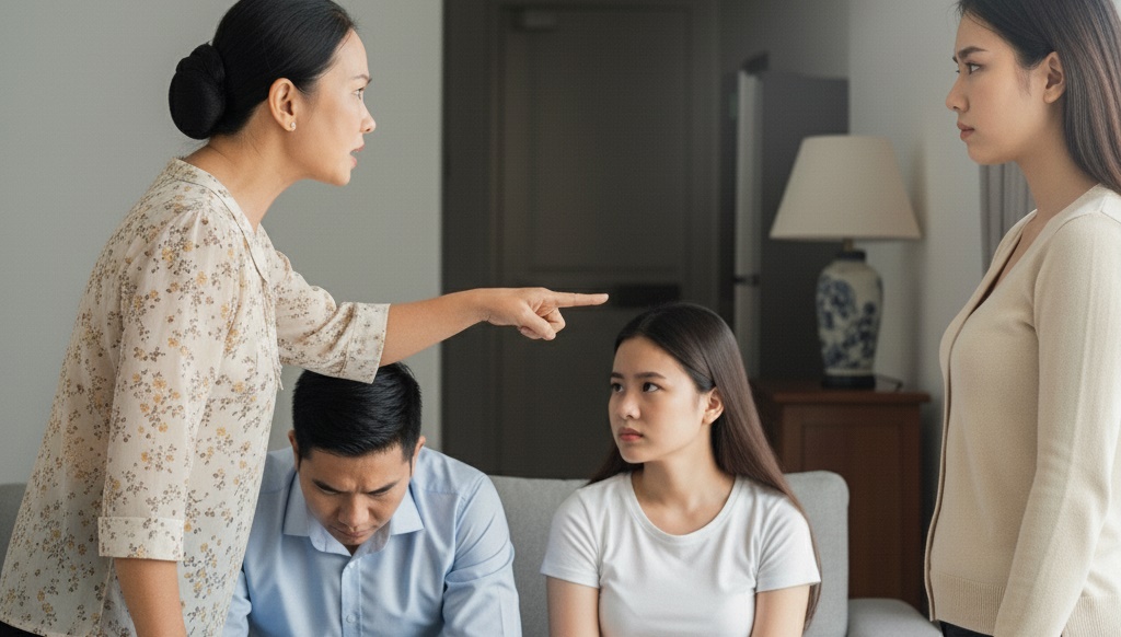 Buổi sáng hôm đó, mẹ chồng bất ngờ xách va li cùng cô em gái chồng – My – bước vào nhà, giọng dõng dạc: