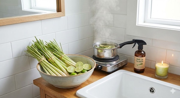 Sả không chỉ dùng để nấu ăn, tinh dầu sả (Citronella) còn nổi tiếng với khả năng kháng khuẩn và đuổi muỗi. Treo sả trong nhà tắm tạo cảm giác thư thái như đang bước vào các khu nghỉ dưỡng nhiệt đới.