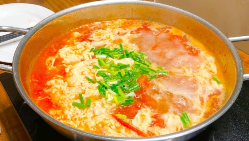 Bước này giúp khử hoàn toàn mùi sống của cà chua, đồng thời tạo màu canh đỏ tươi và hương vị đậm đà hơn.