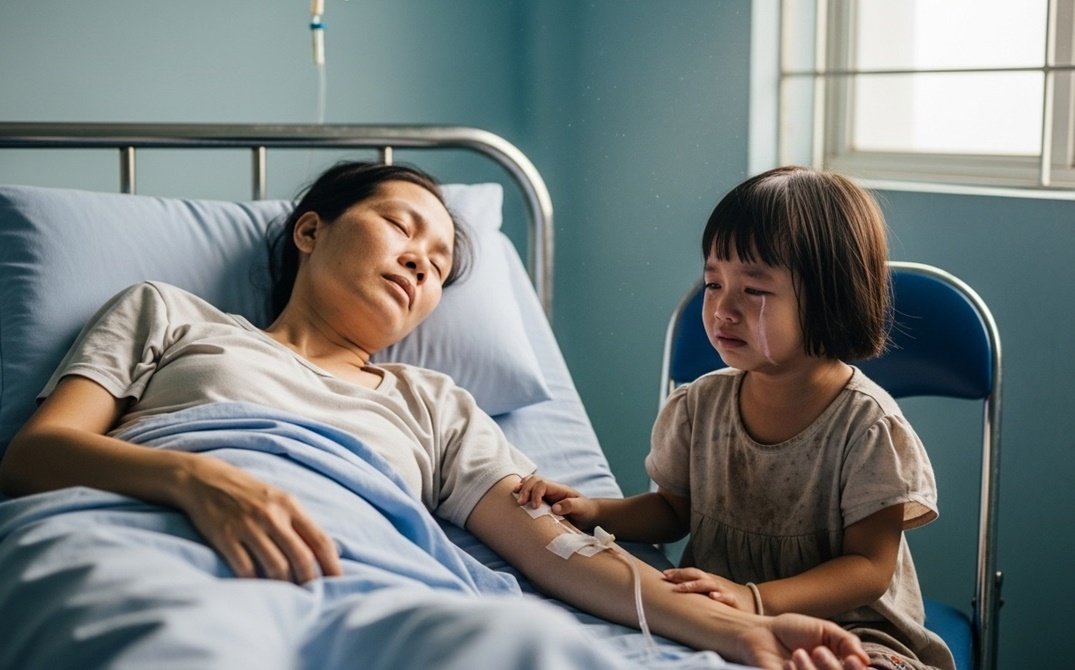 Tiếng chuông điện thoại báo tin nhắn đến vang lên khô khốc giữa không gian nồng nặc mùi thuốc sát trùng. Thương cố nhướng đôi mắt mệt mỏi nhìn vào màn hình. Là tin nhắn của nhà trường: “Thông báo nộp học phí lần 3” Thương buông điện thoại, nước mắt trào ra nóng hổi, trong ngời cô còn đúng 500 nghìn lấy đâu ra 500 triệu đóng học phí cho con. Hôm nay bác hàng xóm bận không trông giúp con bé được nên đứa con 4 tuổi của cô phải vào viện cùng với mẹ. Cô đang nằm ở khoa Ung bướu, chờ phẫu thuật khối u dạ dày.