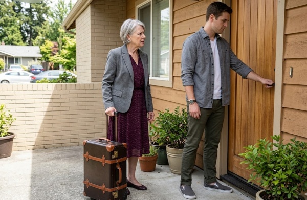 The Uber pulled up to the house at 3:45 p.m. We had agreed on 4 o’clock. I was fifteen minutes early. I almost asked Carlos to drive around the block, but I thought — it’s fifteen minutes. It’s my son. Surely that doesn’t matter. I rolled my suitcase up the driveway, smoothed my dress, and rang the doorbell with a smile already on my face.