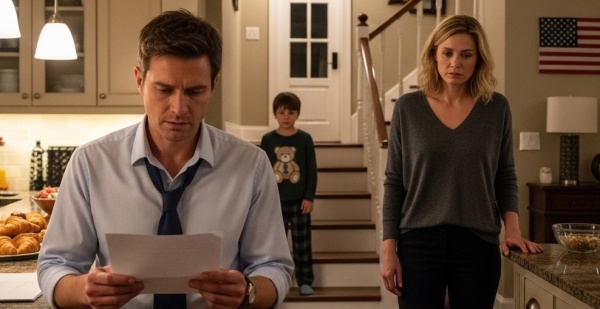 Ethan’s stomach tightened so fast it felt physical, like someone had reached inside him and twisted. His hands, which had been steady enough to drive home from the Marriott in Stamford where he’d spent the night with Harper, suddenly started to shake. He crossed the kitchen in three long strides and picked up the envelope with fingers that felt clumsy and cold.