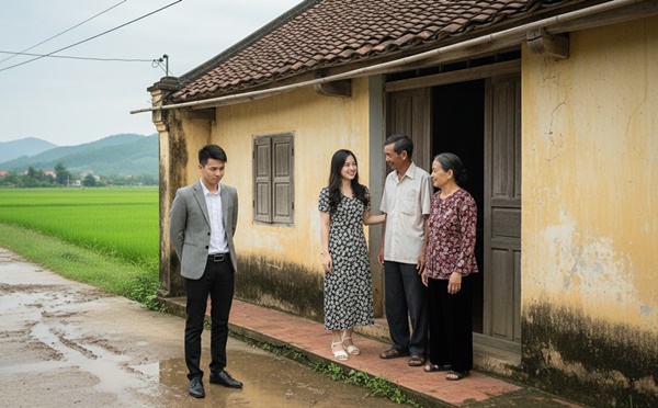 Bố mẹ tôi đon đả chạy ra đón, Hùng chỉ gật đầu hờ hững, không thèm tháo giày mà đi thẳng vào nhà, làm in hằn những vết bùn đất lên nền gạch tàu cũ kỹ mẹ tôi vừa lau sạch. Suốt bữa cơm, anh chỉ gẩy gẩy đôi đũa, chê gà dai, chê canh mặn, rồi lôi điện thoại ra bấm, mặc kệ bố mẹ tôi ngượng ngùng mời mọc.