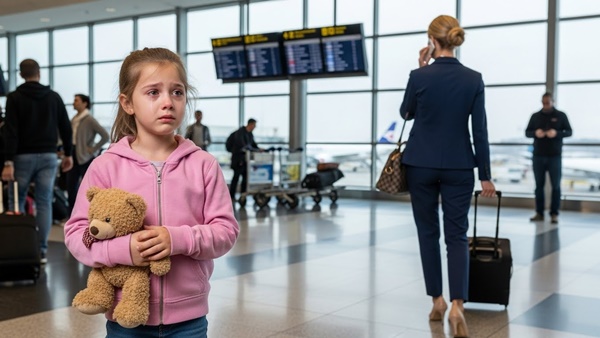 My mother packed my pink suitcase and told me we were starting a ‘new life.’ But at Gate B12, she whispered six words that shattered my world: ‘Go sit there. I’m done.’ She boarded the plane to her billionaire lifestyle, leaving her 8-year-old daughter alone in the busiest airport in the world. She thought I was a burden she could just ‘delete.’ She forgot one thing… my father was still waiting. And he was coming for everything she owned.
