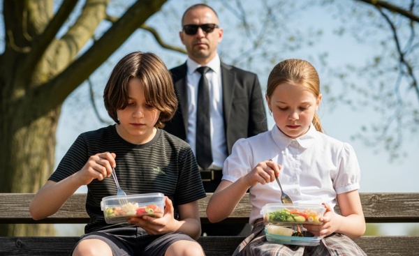 Ethan walked up to the bench without hesitation, like this was routine, like he’d done it a hundred times before. The girl looked up and smiled—a genuine, bright smile that transformed her whole face. Ethan sat down next to her, set his backpack on the ground, and pulled out his lunchbox. I watched, confused, as he opened it and began methodically dividing everything inside into two equal portions. The turkey sandwich our housekeeper had made that morning—he split it in half. The apple—cut in two with the small knife from his lunchbox. The bag of chips—divided carefully. The juice box—he pulled out a second one from his backpack that I hadn’t known he was carrying.