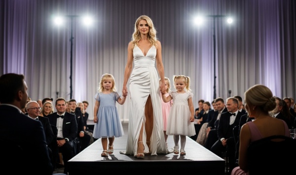 They were small and serious and dressed in matching deep green dresses that coordinated with Rachel’s, and they stood beside her with the solemn attention of children who understand that something important is happening. The room made the collective sound that rooms make when children appear unexpectedly — a warm, involuntary murmur of delight. And then the stage lights caught the three small faces clearly, and I felt the floor disappear beneath me.